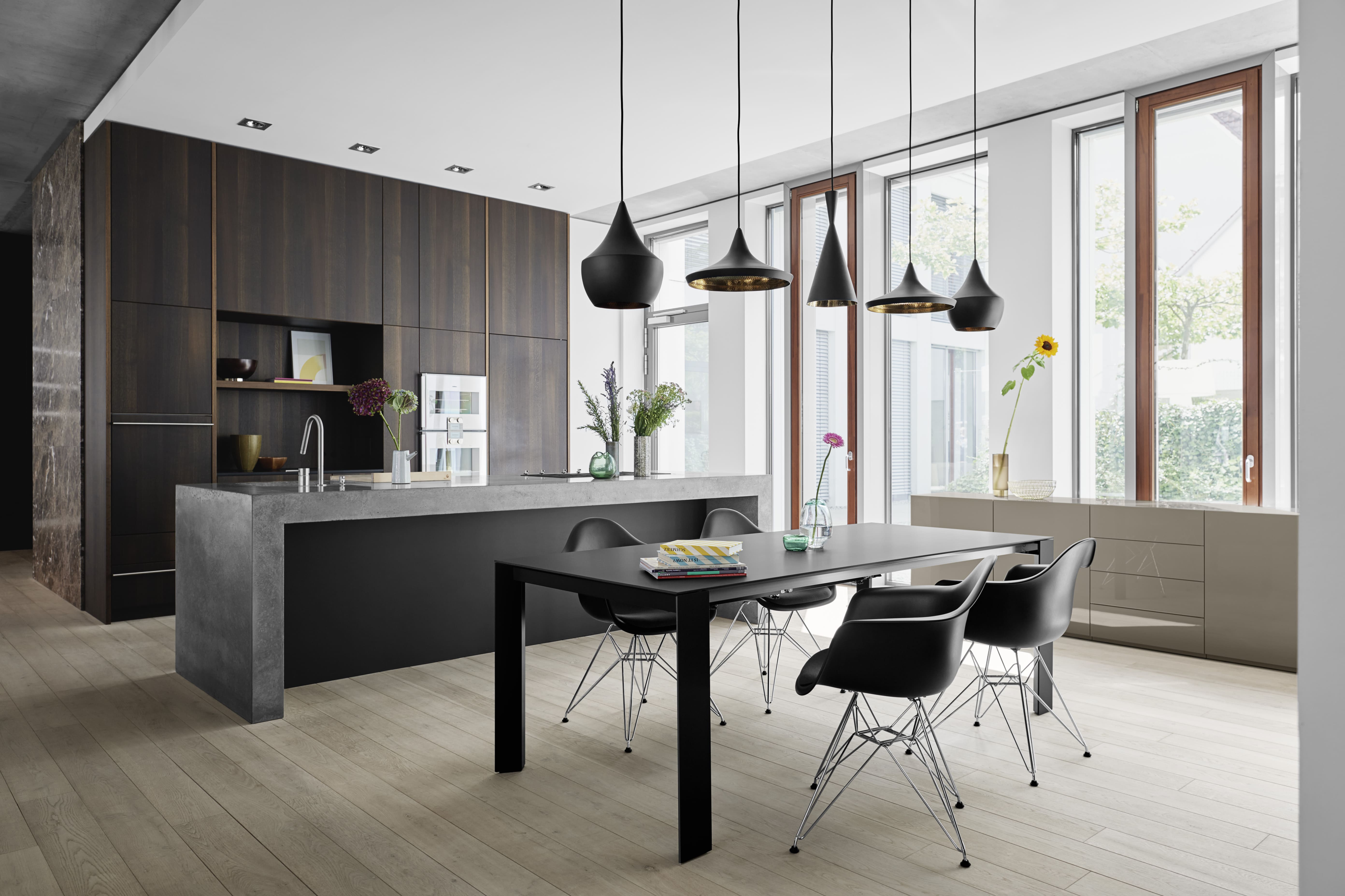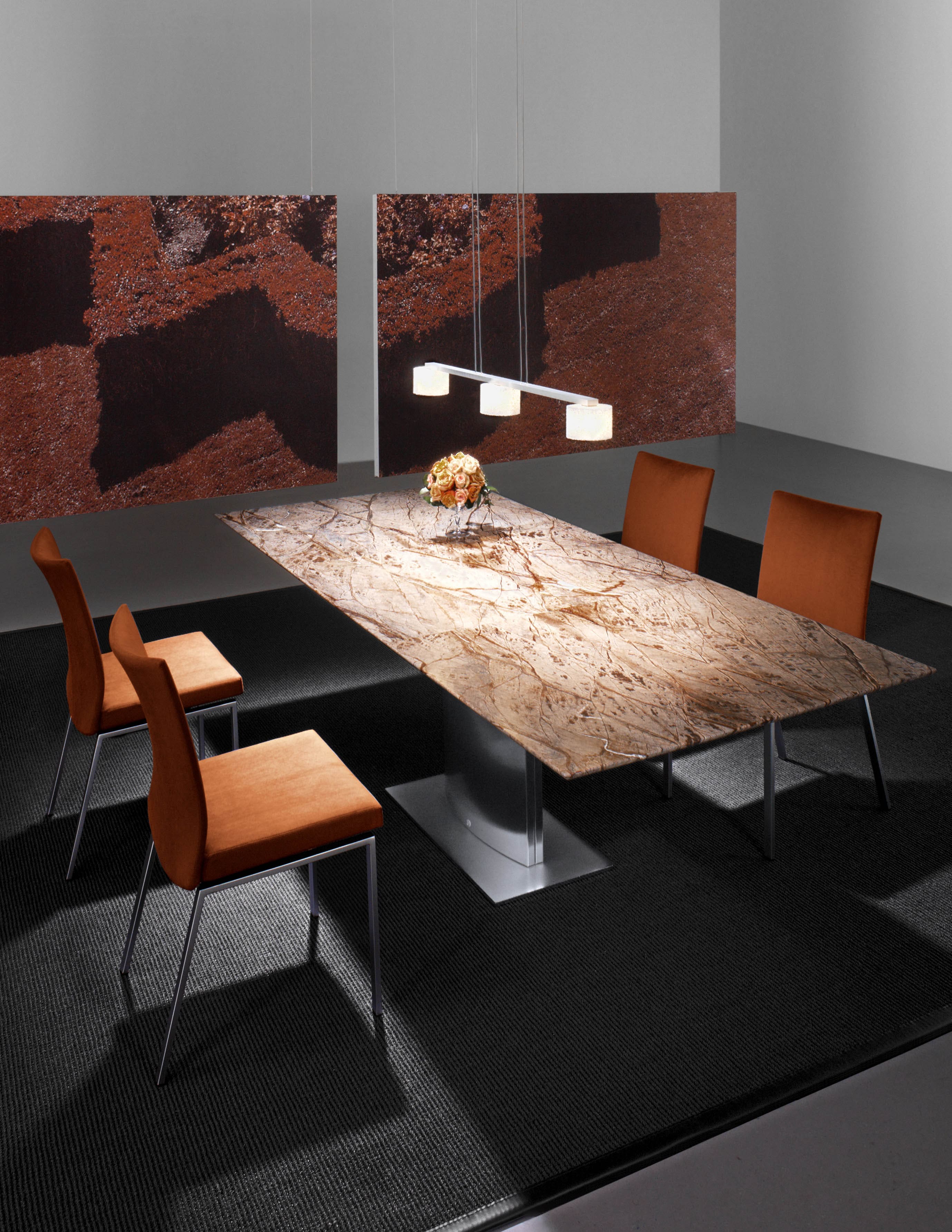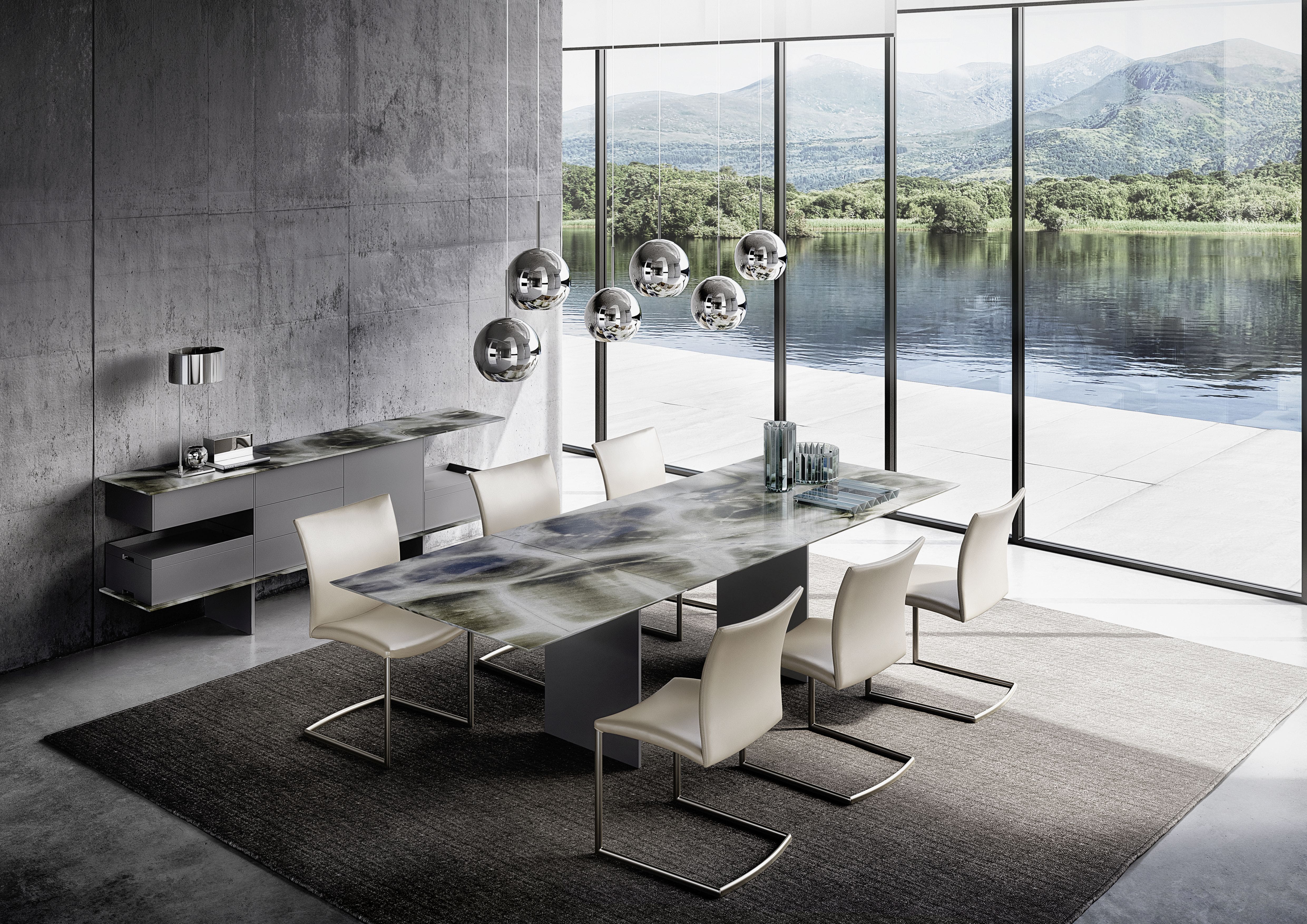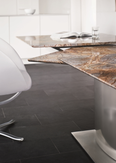 Optez pour le gain de place en modulant la longueur de votre table en fonction du nombre de convives et découvrez notre collection de tables extensibles à rallonges intégrées. En pierre naturelle, bois ou verre, ces tables de salle à manger exclusives sont équipées d'un mécanisme d'extension breveté rendant la manipulation incroyablement facile et rapide.